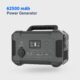 62500mAh Portable Power Generator – 200W AC Output, QC3.0 & PD 30W Fast Charging, Solar Rechargeable (Black)