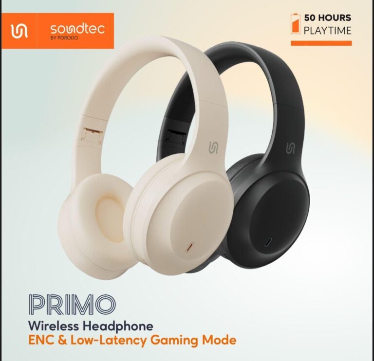 Porodo Soundtec Wireless Headphones – Black, ENC, Low-Latency Gaming Mode, 50H Playtime, Bluetooth 5.4