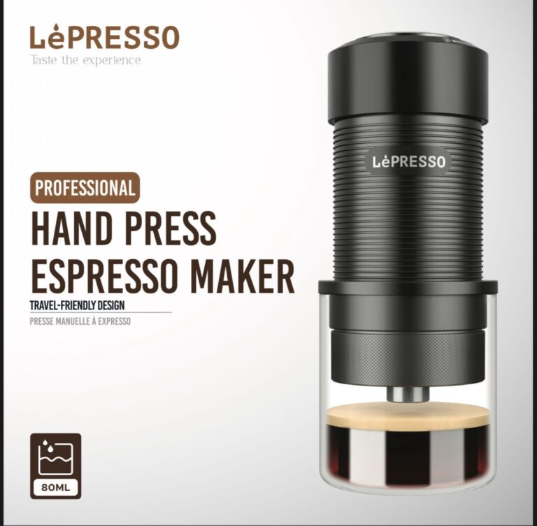 Lepresso Hand Press Espresso Maker – 9 Bar Portable Manual Coffee Machine, 80mL, Black (LPRJPCMBK)