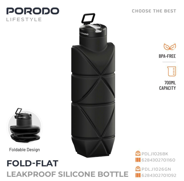 Porodo Lifestyle Fold-Flat Leakproof Silicone Bottle